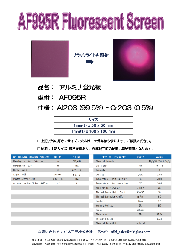 https://www.kagaku.com/広告/仁木工芸/00168|アルミナ蛍光板AF995R.pdf