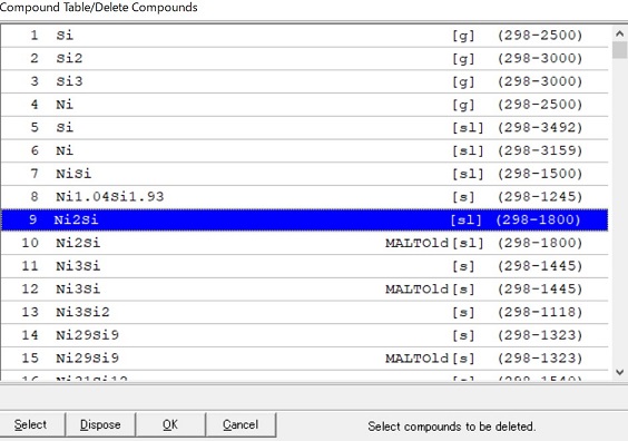 - Select The target compound; for example, Ni2Si and then hit OK button.